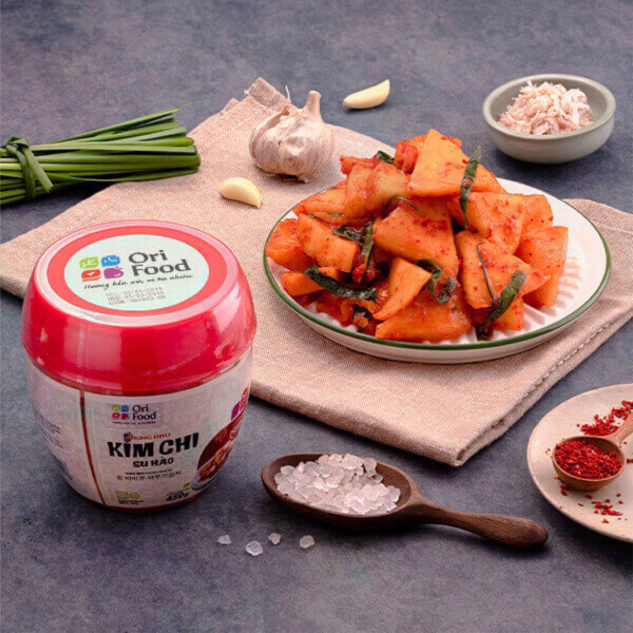 Giới Thiệu: Kim chi là linh hồn của ẩm thực Hàn Quốc. Với màu đỏ của ớt cùng hương vị chua cay, kim chi có một sức cuốn hút khó cưỡng và đã trở thành món ăn kèm hấp dẫn không thể thiếu trong các bữa ăn hằng ngày. Hiểu được điều này, OriFood cho ra mắt Kim Chi Su Hào để phục vụ những khách hàng yêu mến ẩm thực xứ xở Kim Chi.